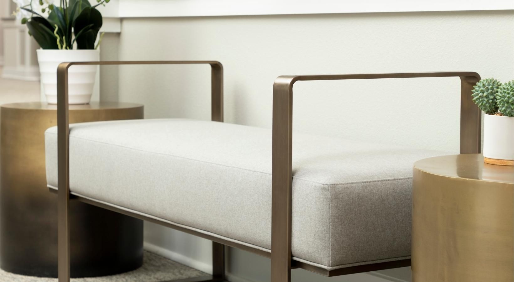 • entryway bench with side tables along a  clubhouse wall
