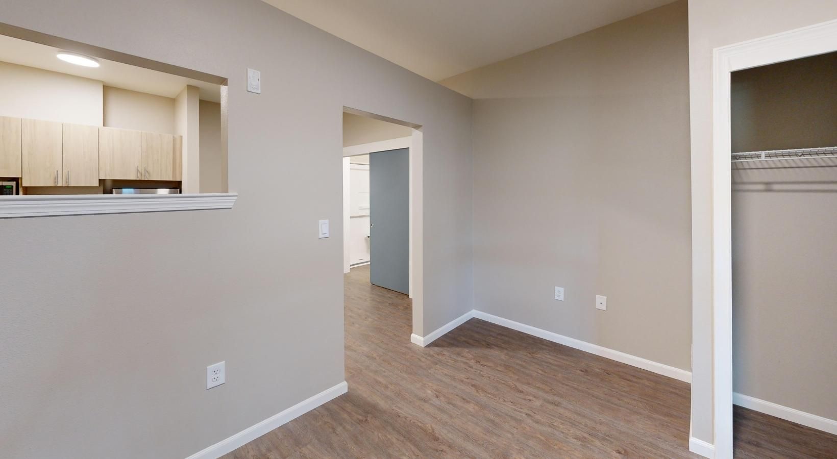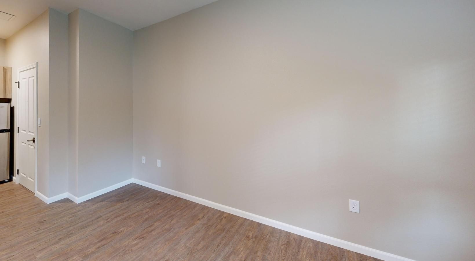 • a room with a wood floor and partition wall