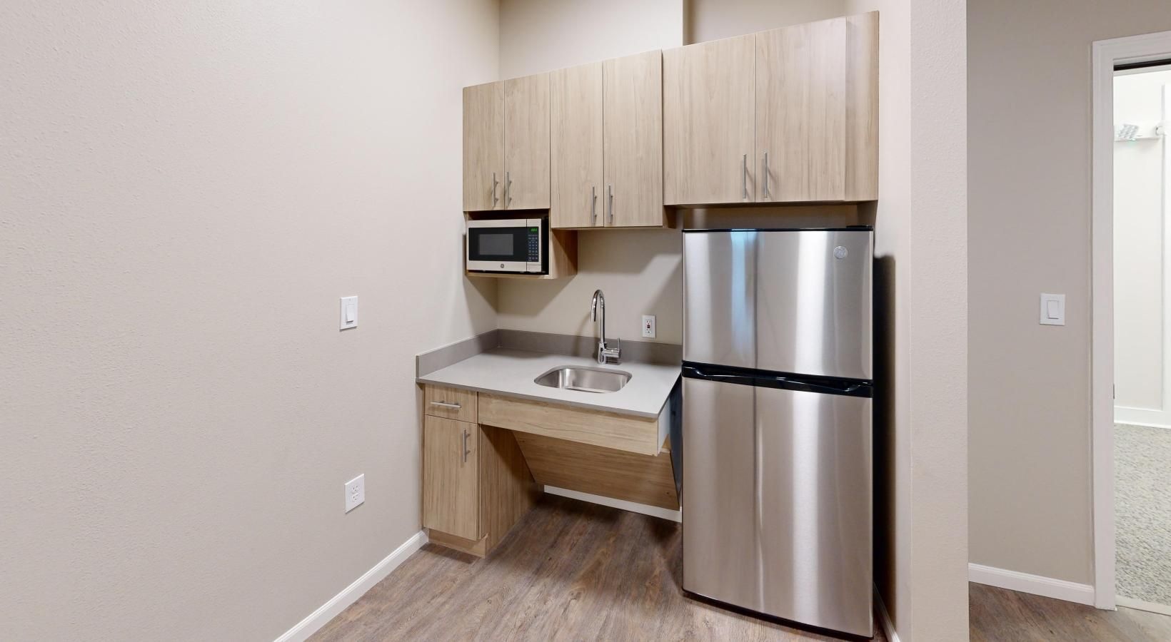 • compact kitchen wall with bright lighting